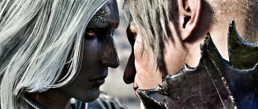 9 - Two Parts - NSFW/Crossover Following a plane shift accident, Abdirak has Lyon Allard (Warframe) questioning his faith.